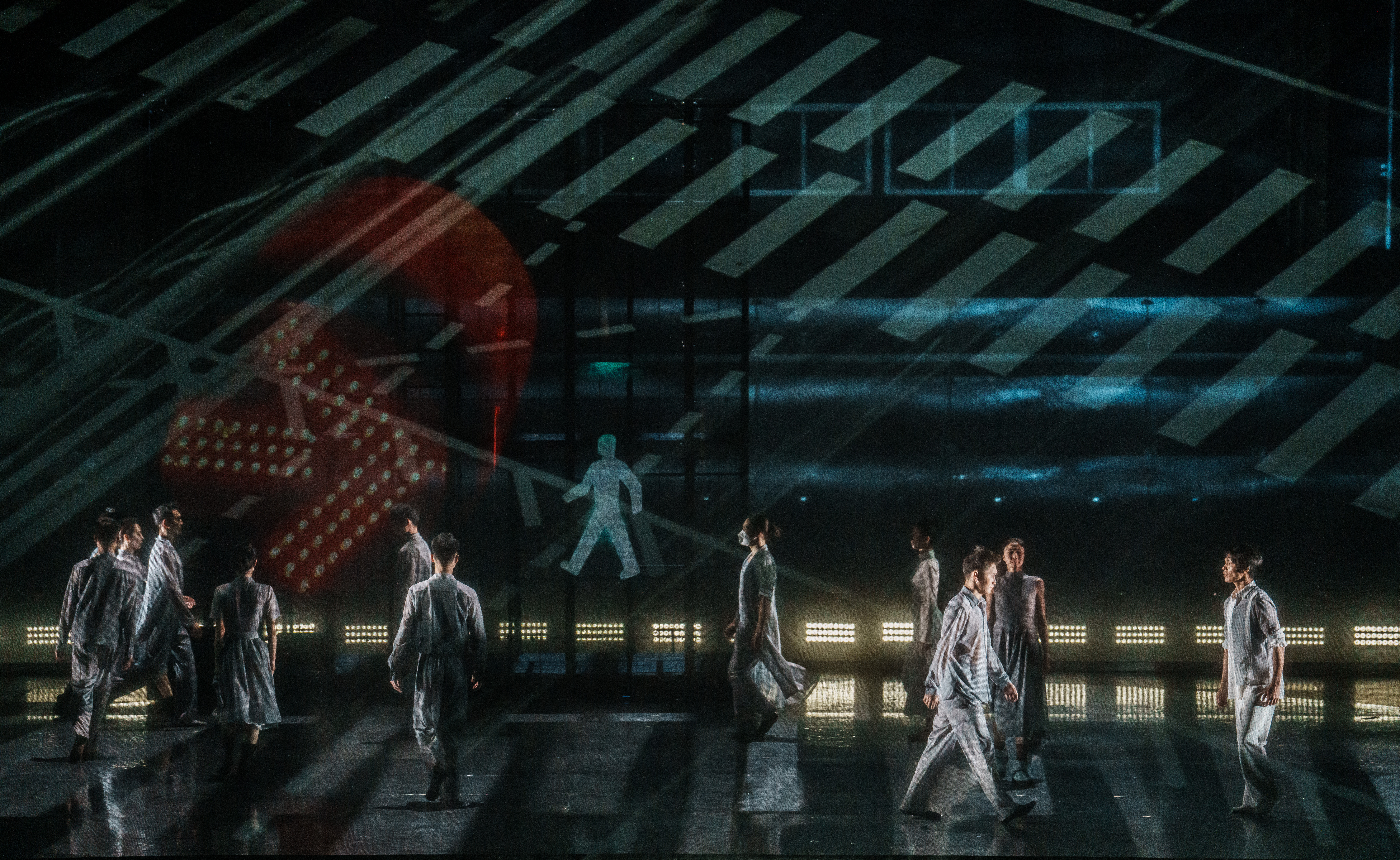 舞蹈劇場《如見》以呼和浩特這座現(xiàn)代化城市的開放包容為底色,打破地域文化的局限,不囿于一時一事、一人一物、一局一域,以廣闊的視野、獨特的眼光、深邃的思想為創(chuàng)作初衷,探索現(xiàn)當代舞創(chuàng)作的全新境界,塑造國際視野的文化品牌。人生舞臺,看見自己,該劇追求“千帆過境,向心而行”的人生狀態(tài),宏大主題與微觀敘事、碎片化表達相結合,讓每個人在不同的片段中看到自己的影子,從而對自己有審視、對人生有思考。創(chuàng)作舞蹈劇場《如見》這樣一部精神高度、文化內涵與藝術價值相統(tǒng)一的文藝作品,關系到創(chuàng)作的立場、境界、格局與品質,需要呼應時代、強化對話意識,跨越地域是必由之路,因此宏大的格局、廣闊的視野、包容的氣度成為這部劇目的創(chuàng)作初衷和基調。