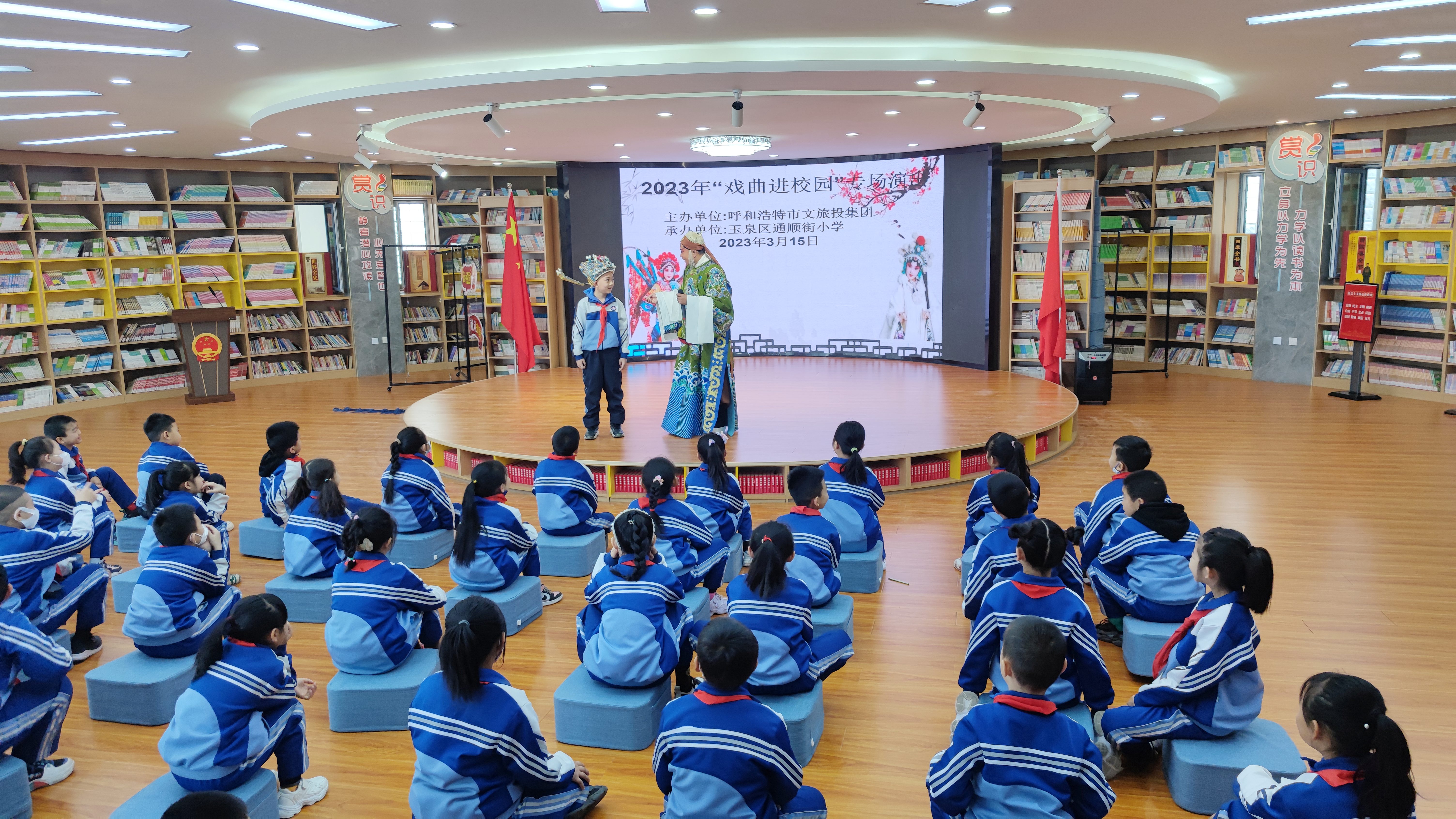 ? ? 為深入學(xué)習(xí)貫徹黨的二十大精神,大力推動中華優(yōu)秀傳統(tǒng)戲曲文化的校園傳承與發(fā)展,落實中共中央辦公廳和國務(wù)院辦公廳《關(guān)于實施中華優(yōu)秀傳統(tǒng)文化傳承發(fā)展工程的意見》《教育部關(guān)于切實加強新時代高等學(xué)校美育工作的意見》《呼和浩特市創(chuàng)建全國文明城市未成年人思想道德建設(shè)工作》文件以及文藝工作座談會精神的要求,近年來,呼和浩特市文化旅游投資集團有限公司全面貫徹黨的教育方針,秉著立德樹人根本任務(wù),組織所屬文藝院團構(gòu)建了由“戲曲進校園”“課本劇授課”和“創(chuàng)作有利于未成年成長的藝術(shù)作品”組成的“高雅藝術(shù)進校園”全新教學(xué)模式,引導(dǎo)廣大師生堅定文化自信,弘揚優(yōu)良傳統(tǒng),堅持守正創(chuàng)新,校園美育成效顯著。