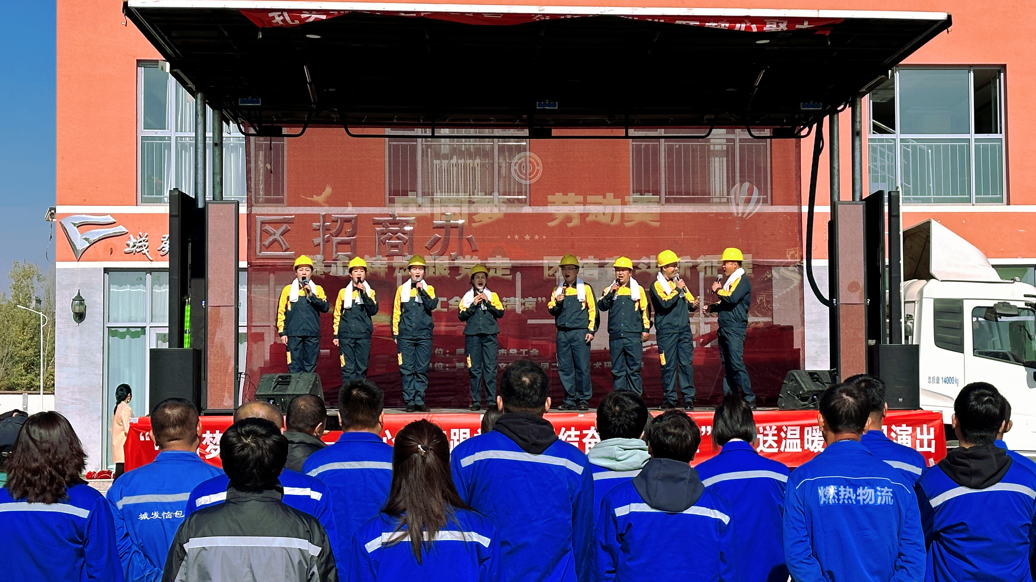 ? ? 凜冽的寒風(fēng)擋不住送關(guān)懷的腳步,深秋的嚴(yán)寒冷卻不了演員們送溫暖的心。整場演出以“中國夢·勞動美——凝心鑄魂跟黨走 團(tuán)結(jié)奮進(jìn)新征程”為主線,通過歌舞表演、音樂快板、女子器樂演奏、二人臺小戲、二人臺對唱等節(jié)目形式,為現(xiàn)場觀眾獻(xiàn)上了一場精彩絕倫的文化盛宴。