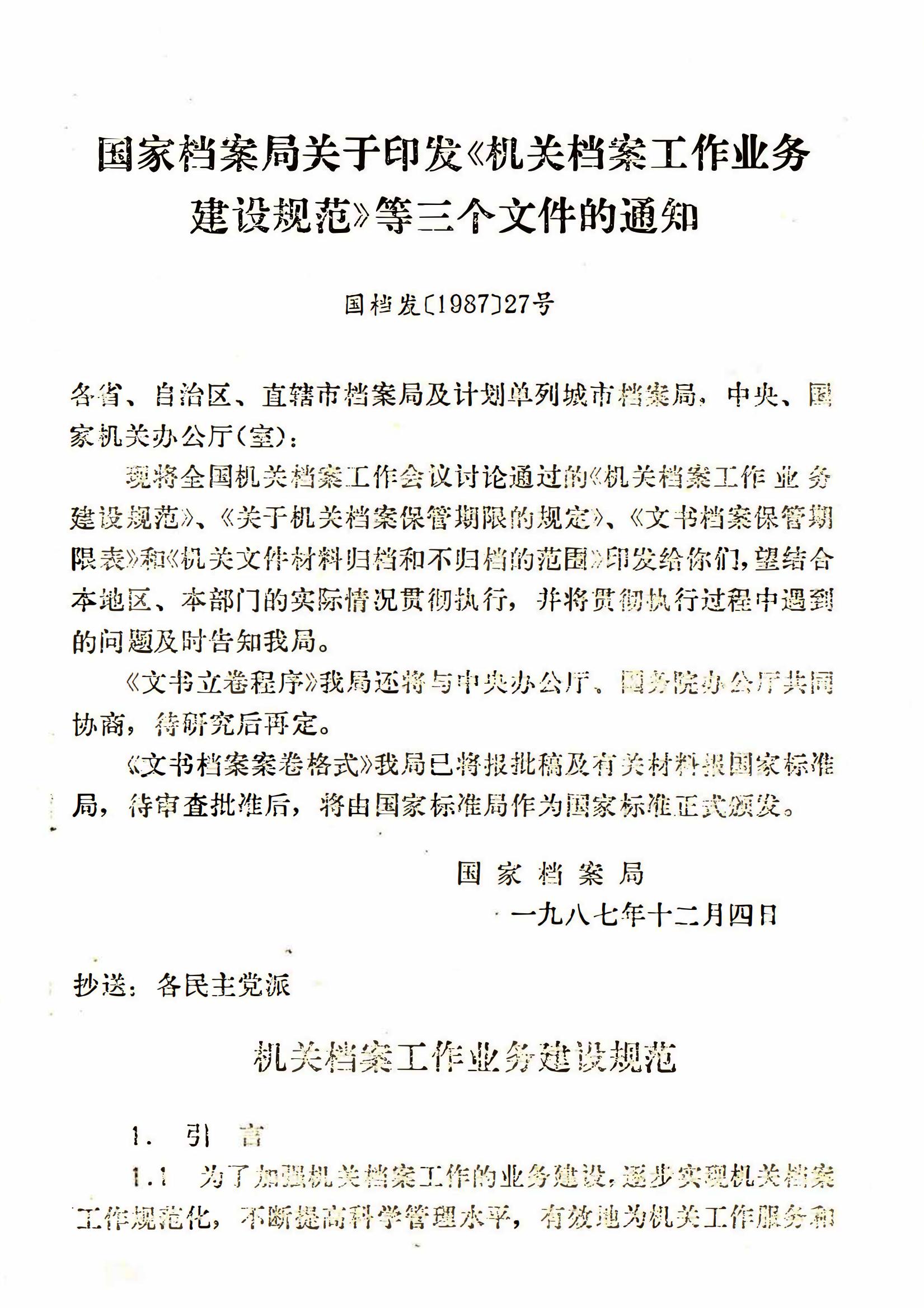 國家檔案局關(guān)于印發(fā)《機(jī)關(guān)檔案工作業(yè)務(wù)建設(shè)規(guī)范》等三個文件的通知