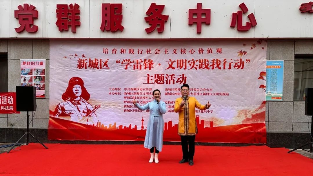 ? ? 為培育和踐行社會(huì)主義核心價(jià)值觀,弘揚(yáng)雷鋒精神和“奉獻(xiàn)、友愛、互助、進(jìn)步”的志愿精神,展現(xiàn)文化志愿者為人民服務(wù)的風(fēng)采。3月5日上午,由中共新城區(qū)委宣傳部、新城區(qū)精神文明建設(shè)委員會(huì)辦公室主辦,呼和浩特市文化旅游投資集團(tuán)二人臺(tái)藝術(shù)研究劇院參與承辦的新城區(qū)“學(xué)雷鋒·文明實(shí)踐我行動(dòng)”主題活動(dòng)在星火巷社區(qū)黨群服務(wù)中心廣場(chǎng)隆重舉行。