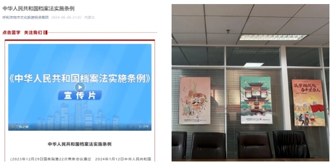 ? ? 市文旅投集團子公司新思路公司利用鴻雁劇場和民族劇場的LED顯示屏對檔案宣傳標(biāo)語和海報進行滾動循環(huán),擴大宣傳效果;會展公司在2024年第十六屆呼和浩特國際車展暨新能源產(chǎn)業(yè)博覽會期間,利用展廳電子屏幕滾動播放國際檔案日宣傳標(biāo)語,提升了檔案工作的社會知曉度和影響力;二人臺藝術(shù)研究劇院播放了劇院成立70周年的視頻回顧,通過珍貴的歷史照片和影像資料,展示劇院在現(xiàn)代化進程中的奮斗與貢獻,更是對新時代二人臺人的鞭策和鼓舞;首府文旅公司充分發(fā)揮景區(qū)資源優(yōu)勢,利用大青山紅色文化公園、大黑河軍事文化樂園大屏播放《檔案法》《中華人民共和國檔案法實施條例》動漫宣傳片等相關(guān)資料,引導(dǎo)大家樹立法治思維,增強檔案意識。其他子公司也通過發(fā)布微信公眾號、播放宣傳片、組織員工參加網(wǎng)絡(luò)競答、會議傳達等形式普及檔案知識,宣傳檔案文化;同時集團統(tǒng)籌自媒體及各子公司自媒體平臺發(fā)布微信公眾號等各類檔案日宣傳信息,充分發(fā)揮新媒體平臺作用,拓展宣傳渠道,號召廣大員工積極參與到檔案管理工作中去,營造出“人人都是檔案員”的濃厚氛圍。